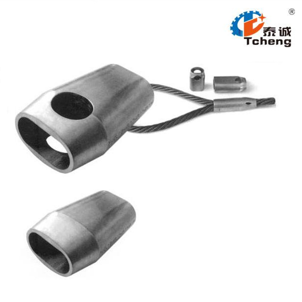 鋼絲繩鋁套—鋁套是鋁材質(zhì)的,較輕,用來固定鋼絲繩兩端的頭的,鋼絲繩根據(jù)需要的掛圈大小,插入鋁套,然后放入壓套機(jī)模具內(nèi),(根據(jù)鋁套型號(hào)對(duì)應(yīng)壓套機(jī)模具,模具型號(hào)跟鋁套型號(hào)都是標(biāo)準(zhǔn)尺寸),壓制完,把兩邊擠壓出來的鋁廢料清理掉,一根鋼絲繩完成!